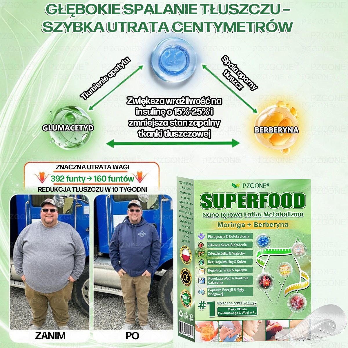 𝐏𝐙𝐆𝐎𝐍𝐄® Glumasetide Superfood 𝑵𝒂𝒏𝒐 Mikronakłuwana Plaster: 98% skuteczności wchłaniania, kompleksowa transformacja kontroli masy ciała oraz zdrowia wątroby, jelit i skóry